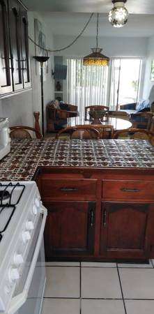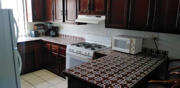 -Cocina integral equipada con electrodomésticos necesarios como: refrigerador, estufa, microondas cafetera, servicio de comedor para seis personas, segundo baño completo se encuentra en el pasillo.