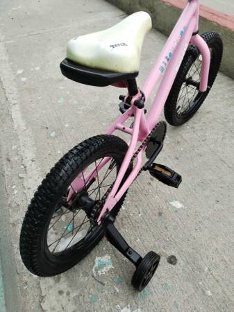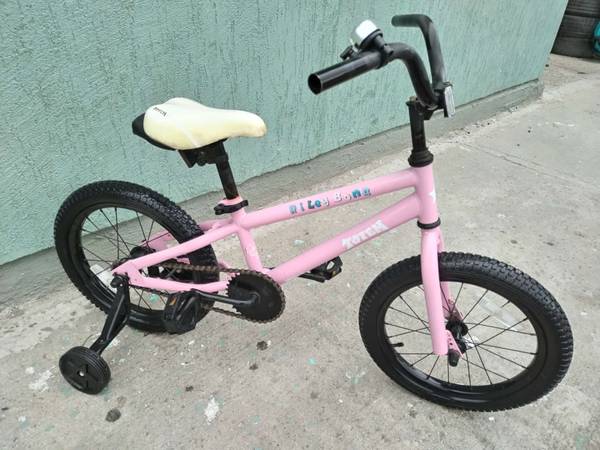 BICICLETA MEDIDA 16 COLOR ROSITA CON LLANTITAS DE ENTRENAMIENTO LLANTAS SEMINUEVAS Y BUENOS RINES $ 600 PESOS TEL .664 303 91 42